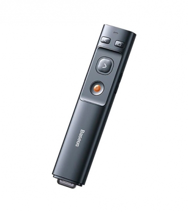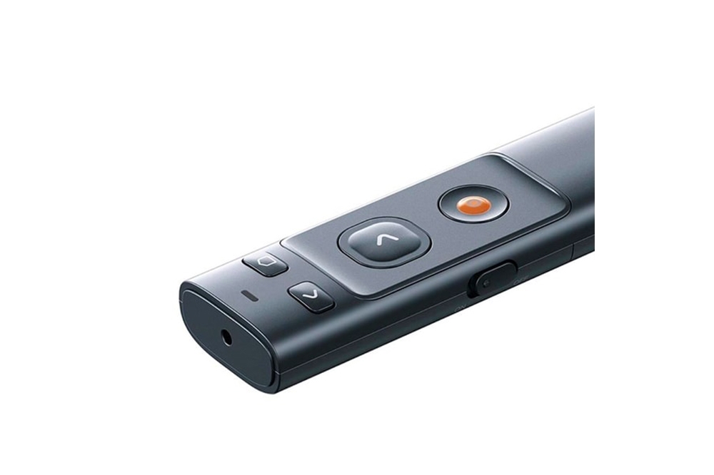 - Включает кнопки для перелистывания слайдов, регулировки громкости, смены экранов и включения полноэкранного режима. Имеет встроенный лазерный указатель красного цвета.
