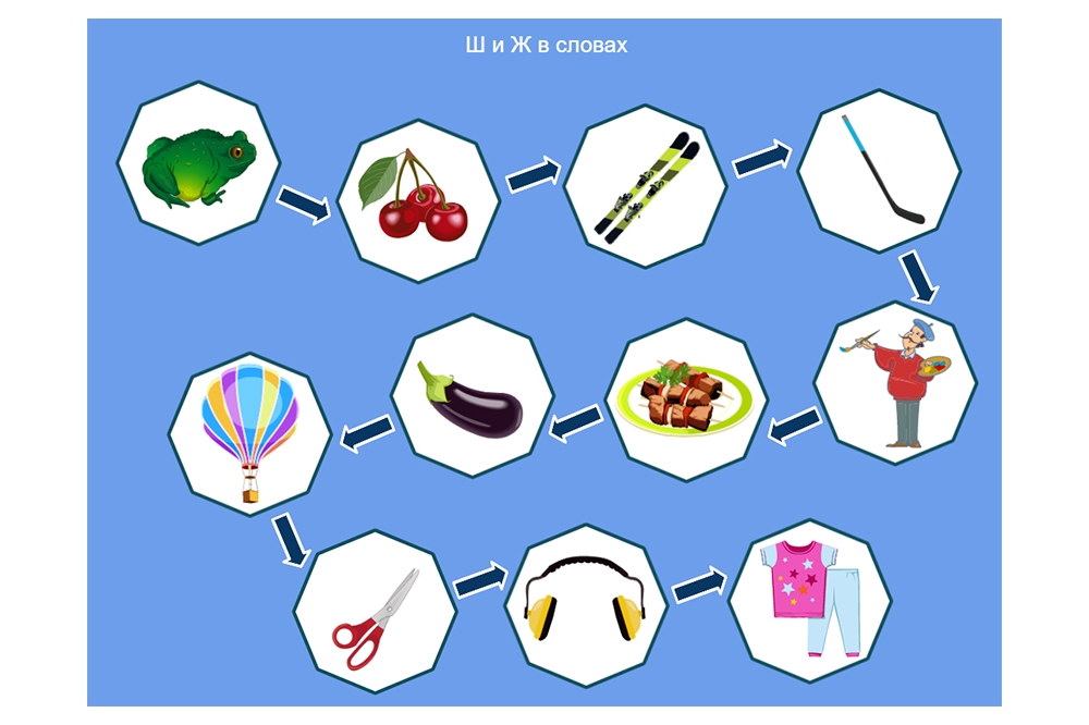 1) Дидактический материал - на флешке 200 слайдов со словами и картинками. Логопедические слайды содержат материалы на отработку звукопроизношения. Они помогут ребенку многократно повторять слова в виде слоговых цепочек, слов, фраз, чистоговорок, скороговорок, стишков и других логопедических упражнений на работу с трудными звуками.