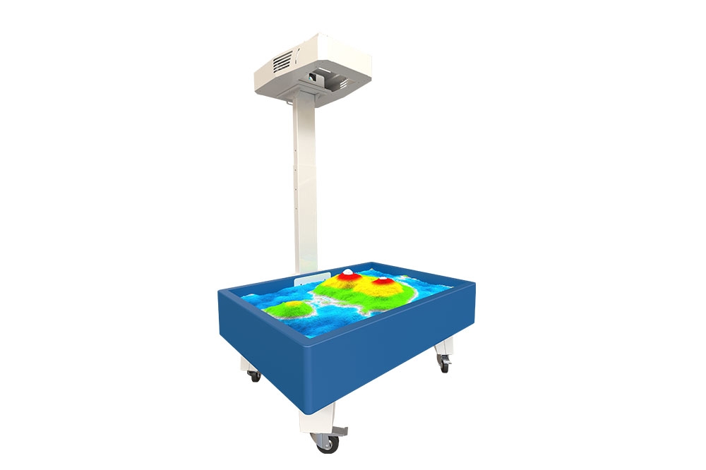 Работа интерактивной песочницы построена на технологии дополненной реальности. На песок проецируются настоящие текстуры водных объектов, гор, вулканов и многих других поверхностей. В итоге, песочница, дает возможность Вам своими руками создать собственный мир, который можно изменить мгновенно.