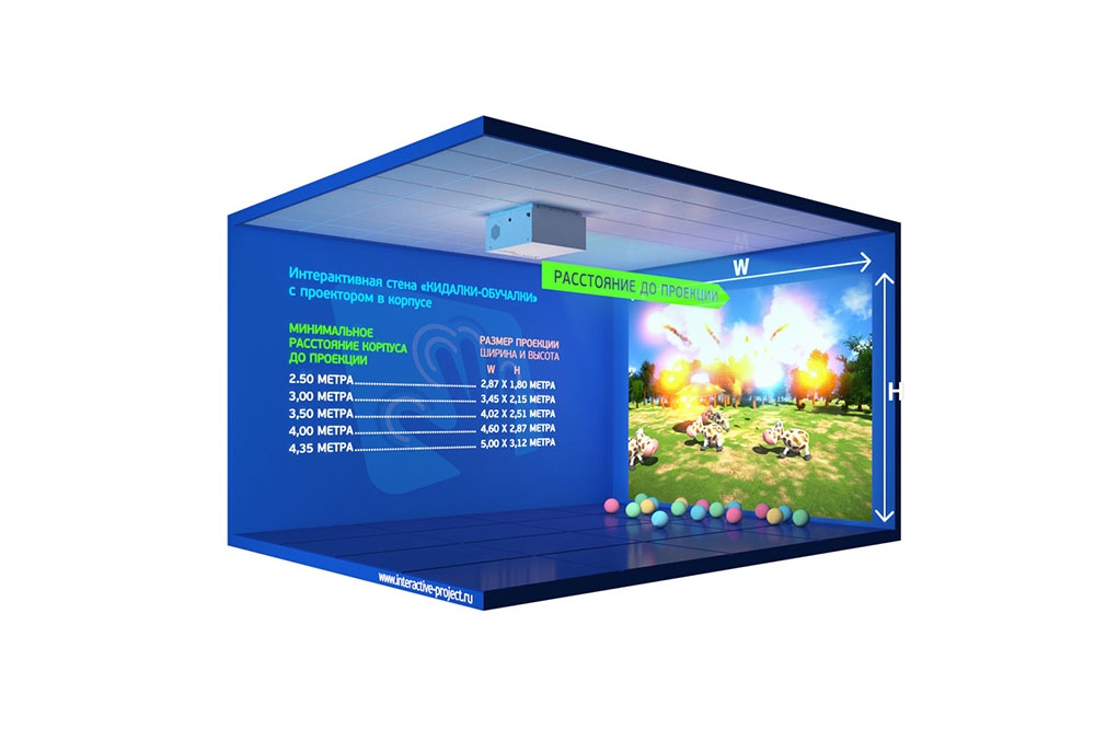 Такая система не только оживляет изображение на стене, но и позволяет управлять и непосредственно соприкасаться с ним. Для этого используются кубики либо мячи. Главное соблюдать простую технику безопасности, чтобы никто из детей не пострадал физически. Ввиду этого важно учитывать силу удара и отскока от стены используемых предметов.