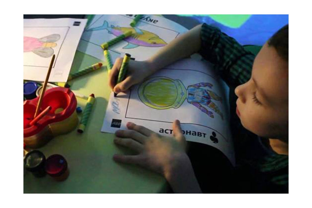 Нужно просто взять в руки фломастеры, краски, либо карандаши, чтобы совместно разукрасить картинку. Готовую картинку обрабатывает специальная программа, которая заранее установлена на оборудовании. В результате на стене появляются ожившие рисунки. Рыбки поплыли, их можно потрогать, с ними реально поиграть. И все это под задорную музыку. Поистине настоящий праздник!