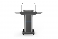 По бокам от монитора расположены две полки, где можно разместить необходимые документы. Интерактивная трибуна Wize WSP-22S поставляется с двумя кардиоидными микрофонами типа «гусиная шея».