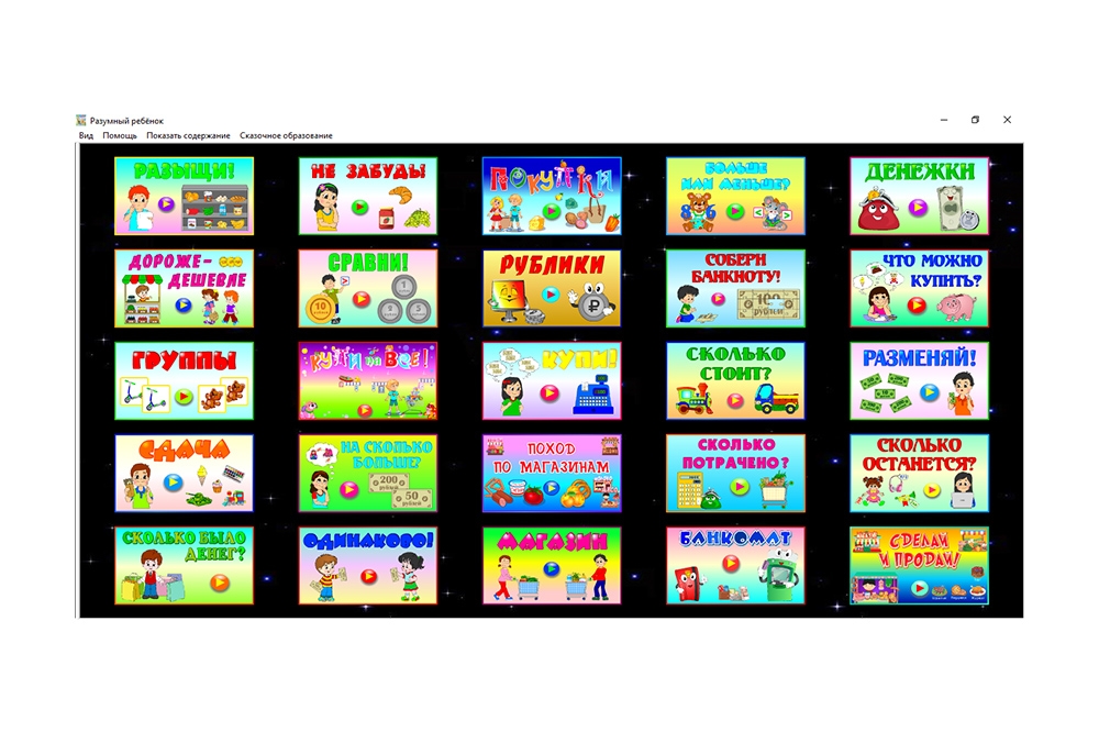 Букволюб; Одинаковы!; Английский язык для дошкольников; Волшебные краски для мальчиков; Светофор; Искатель; Чудо-пазлы; История; География; Астрономия; Стратегия; Мимика и жесты; Азбука финансов; Я умею рисовать!