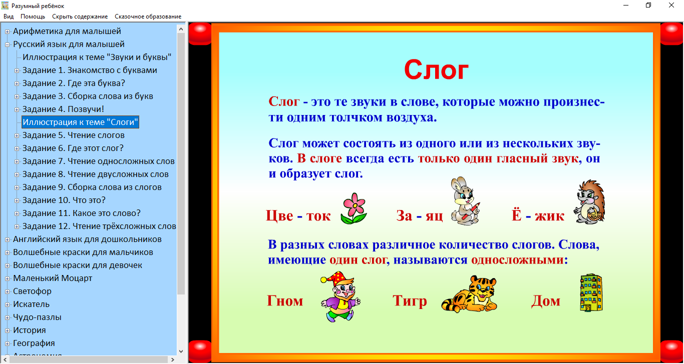 Сборник «Разумный ребёнок» («Умный ребёнок 2») — это комплект интерактивных развивающих программ, включающих в себя обучающие и развивающие игровые задания, предназначенные для детей 5 - 6 лет. Комплект содержит 312 многовариантных развивающих игр и заданий разного уровня сложности.