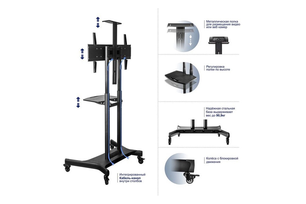 Мобильная стойка для ЖК-дисплеев и интерактивных панелей с диагональю от 55 до 80 дюймов.