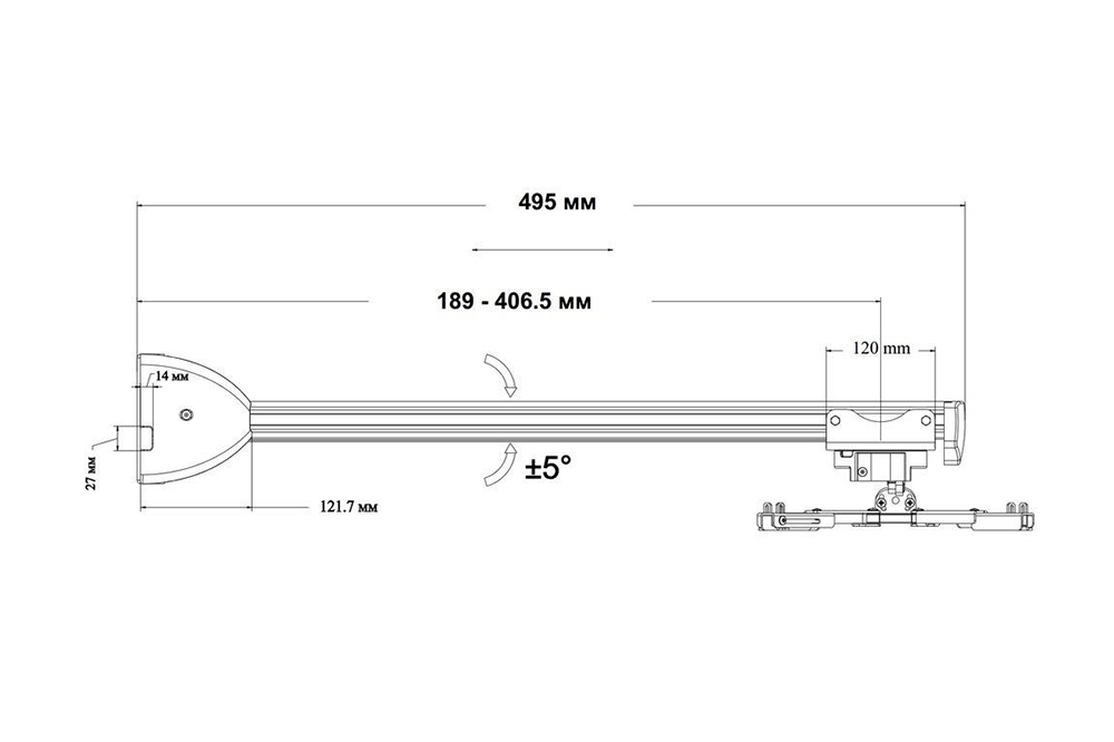 Проецируемое изображение можно регулировать точно под размер интерактивной доски. Это достигается за счет наклона штанги на угол 5° и самого крепления на 25°, а также вращения на 360 градусов. Возможность установки проектора на расстоянии 19 - 40 сантиметров от стены позволяет задействовать проекторы с различным проекционным расстоянием, придавая инсталляции дополнительную гибкость.