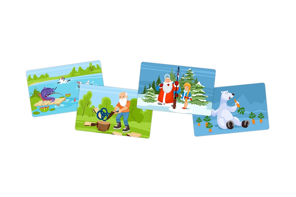 Комплект поставки | 32 комплекта карточек, 4 комплекта открыток, 2 набора наклеек |
