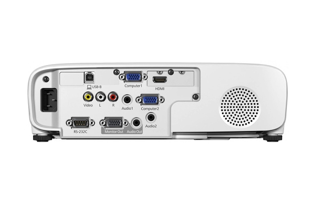 Функции | Встроенный динамик; Слайд-крышка; Быстрое включение; Мгновенное отключение; USB Display 3 в 1; Автоматическая коррекция трапецеидальных искажений; Просмотр изображений с USB-накопителей; Просмотр видео с USB-накопителей; Фронтальный вывод теплого воздуха; Прямое подключение к документ-камере Epson ELPDC06; Мониторинг и управление по сети; Подключение по Wi-Fi (опционально); Quick Corner; Split Screen |