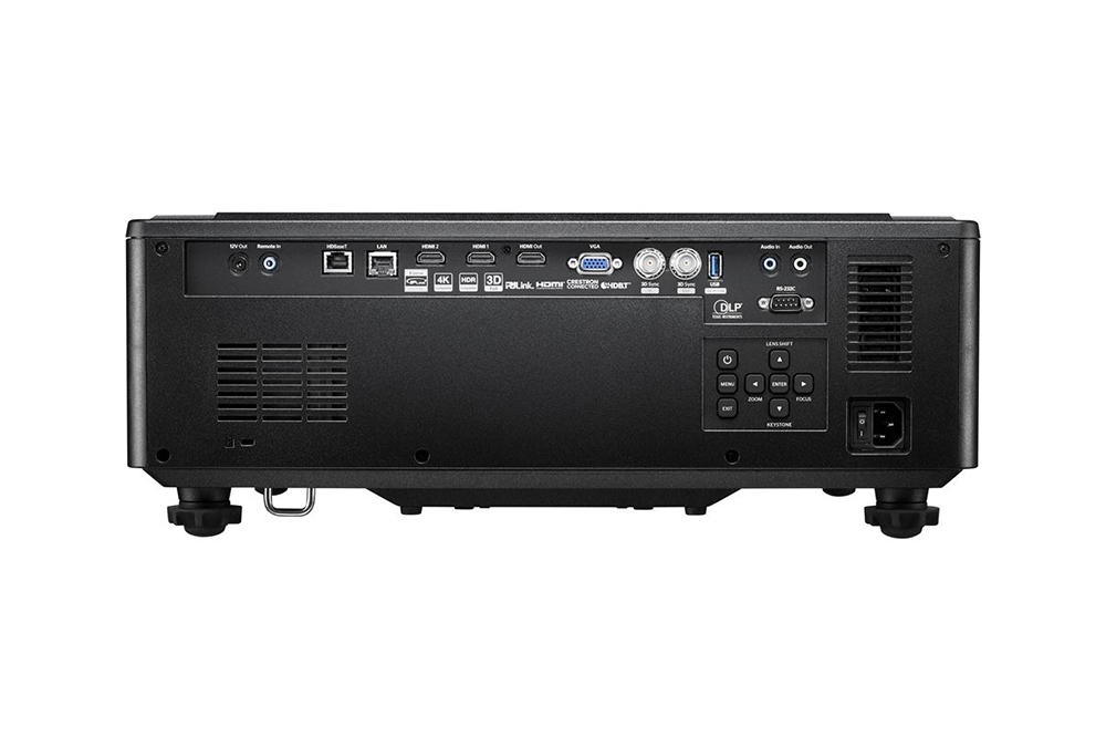 - Оборудован разнообразными портами и интерфейсами, включая HDMI, VGA, DVI и HDBaseT, этот проектор обеспечивает легкое подключение к различным источникам