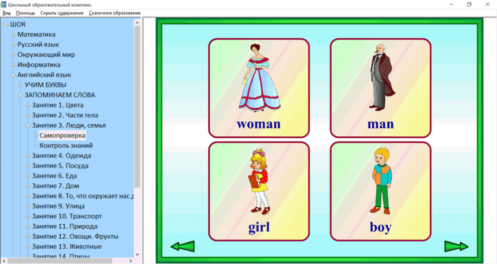 Интерактивный тренажёр по английскому языку для начальной школы включает весь объём курса языка в начальной школе, содержит около ста плакатов и более пятисот интерактивных заданий, помогает ребёнку быстро освоить основы языка, легко запомнить необходимый словарный запас и научиться правильно формировать предложения.