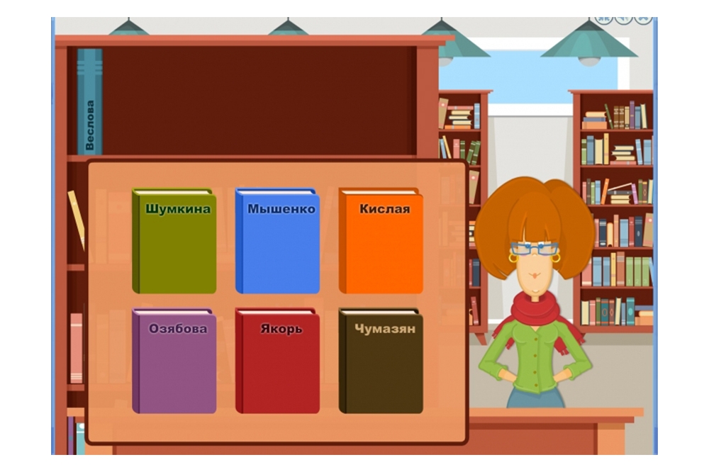 Книжки в ряд - игра на отработку навыка сортировки объектов в алфавитном порядке.