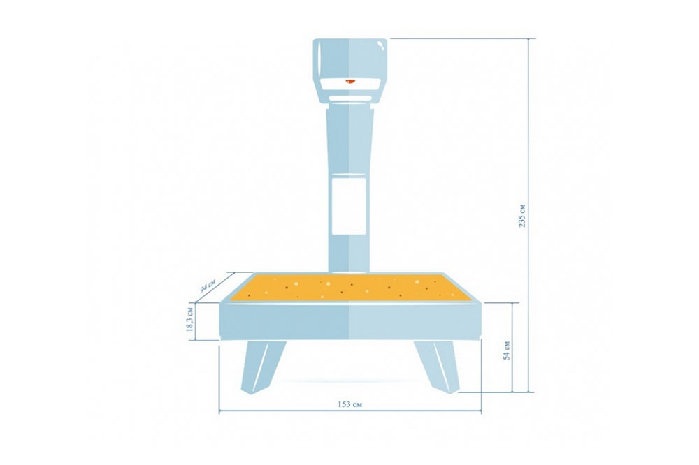 Интерактивная столешница используется совместно с интерактивной песочницей iSandBOX, укладывается поверх короба с песком, превращая его в интерактивный стол.