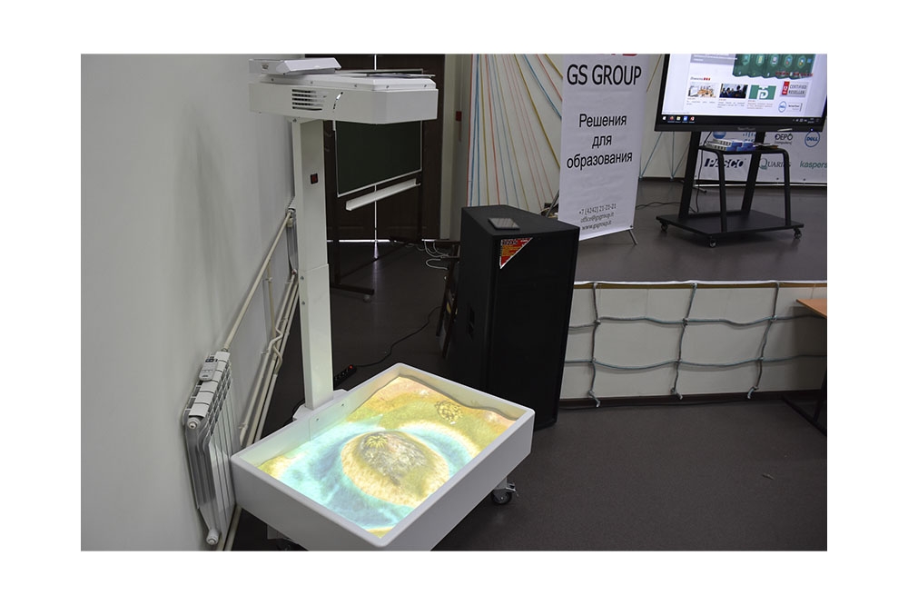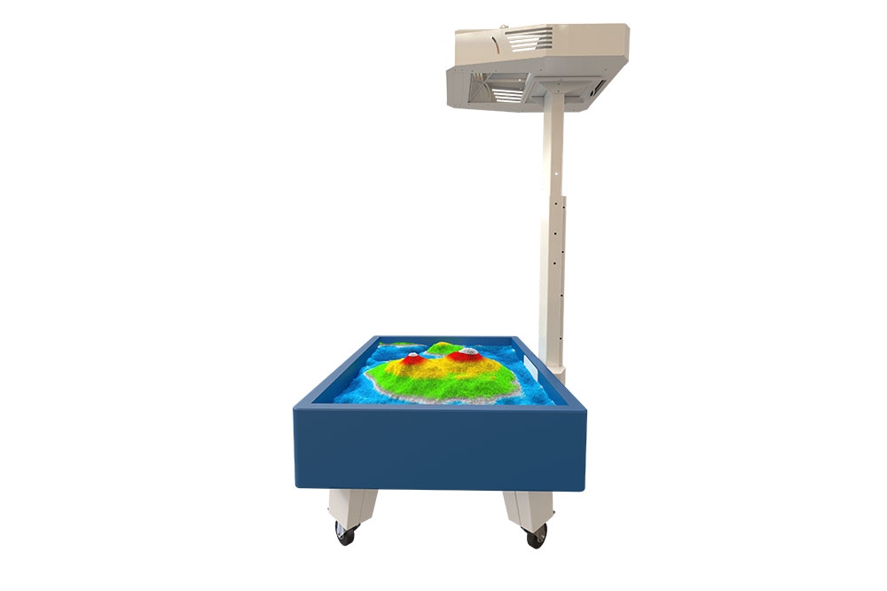 Работа интерактивной песочницы построена на технологии дополненной реальности. На песок проецируются настоящие текстуры водных объектов, гор, вулканов и многих других поверхностей. В итоге, песочница, дает возможность Вам своими руками создать собственный мир, который можно изменить мгновенно.
