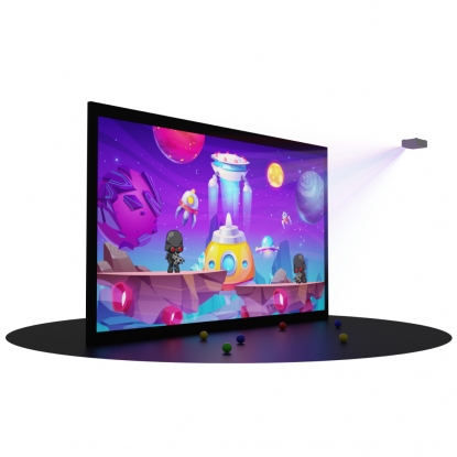 Работает на любой стене без капитального ремонта. Управляется мягкими мячами, реагирует мгновенно. Подходит даже для самых маленьких детей! В комплекте всё необходимое: проектор, сенсоры, планшет, игры, крепления и мячики!