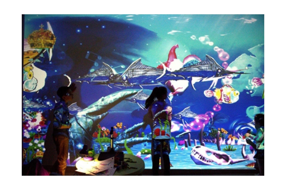 Нужно просто взять в руки фломастеры, краски, либо карандаши, чтобы совместно разукрасить картинку. Готовую картинку обрабатывает специальная программа, которая заранее установлена на оборудовании. В результате на стене появляются ожившие рисунки. Рыбки поплыли, их можно потрогать, с ними реально поиграть. И все это под задорную музыку. Поистине настоящий праздник!