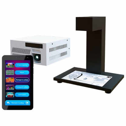 Комплект поставки | Корпус (с проектором, датчик кинект), Пульт к проектору, Сканер, Крепление, Беспроводные клавиатура и мышь, Технический паспорт, ПО Ожившие рисунки, Сертификат, Гарантийный талон 1 год |