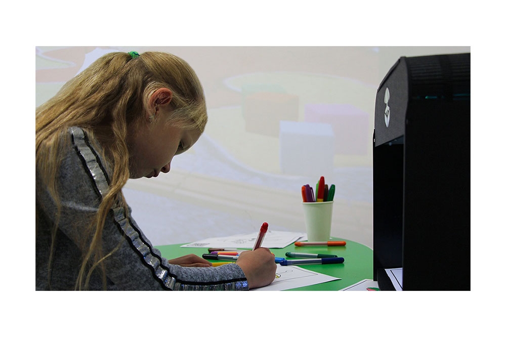 - При помощи сканера раскрашенные картинки «оживают» на интерактивной стене.