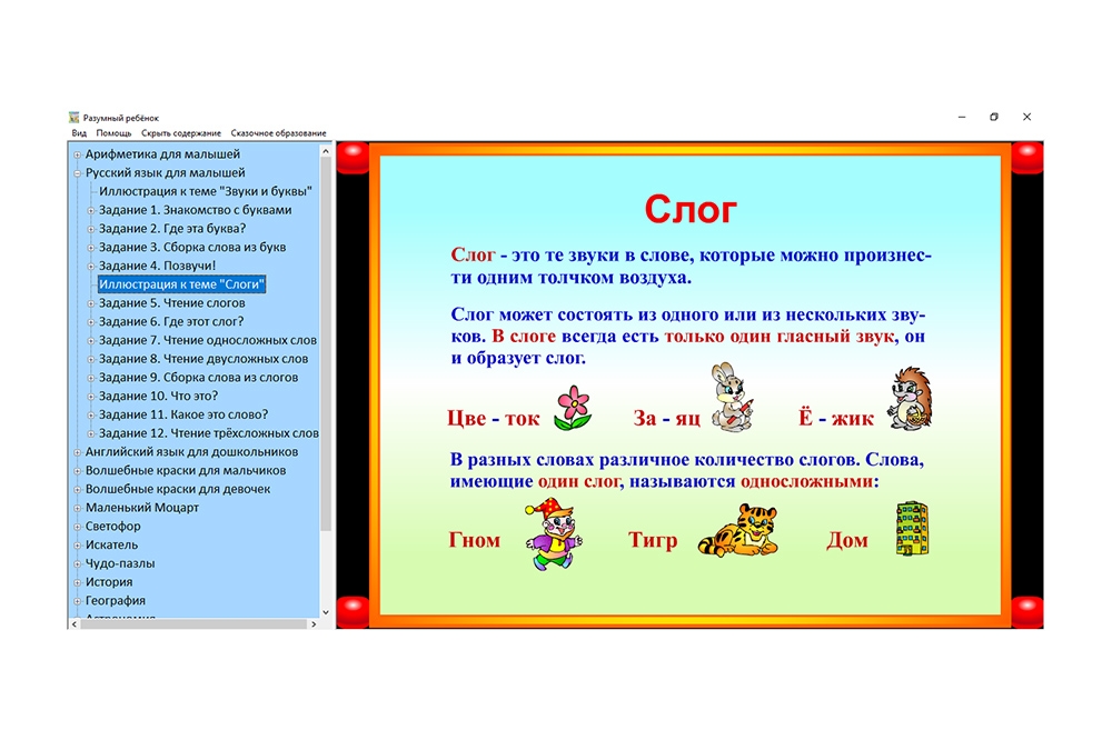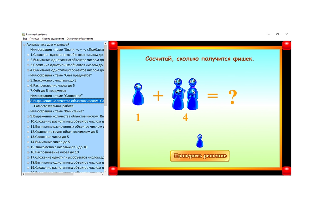 Сборник «Разумный ребёнок» («Умный ребёнок 2») — это комплект интерактивных развивающих программ, включающих в себя обучающие и развивающие игровые задания, предназначенные для детей 5 - 6 лет. Комплект содержит 312 многовариантных развивающих игр и заданий разного уровня сложности.