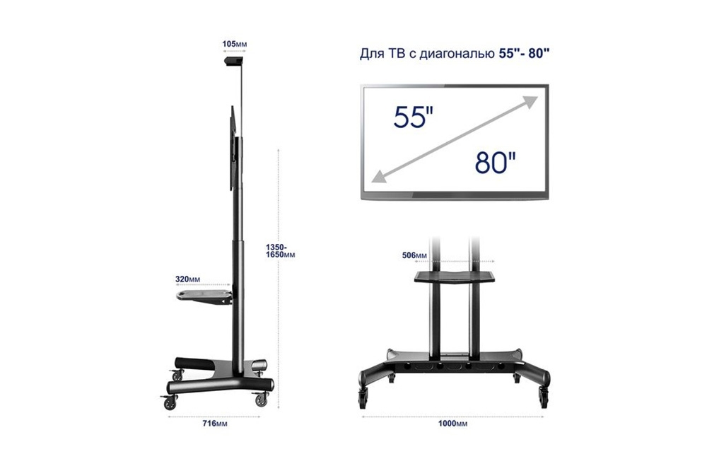 Мобильная стойка для ЖК-дисплеев и интерактивных панелей с диагональю от 55 до 80 дюймов.