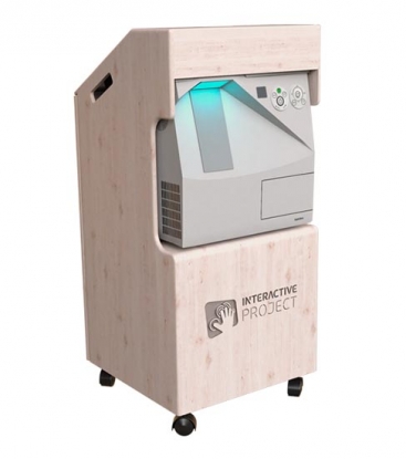 Мобильная версия интерактивного пола создана из прочного корпуса из МДФ. Стол может быть выполнен в любых цветах и комплектоваться разными проекторами. Корпус интерактивного пола имеет колесики со стопорным механизмом для легкого перемещения. Данный вариант интерактивного пола может использоваться как для развлечения так и для обучения и презентаций.