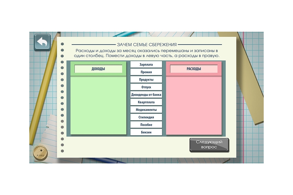 ПО подходит для интерактивных панелей, столов, досок, компьютеров и планшетов. Cостоит из 4 блоков: введение, начальный, основной и продвинутый, где содержится более 100 аналитических и творческих задач на повышение финансовой грамотности.